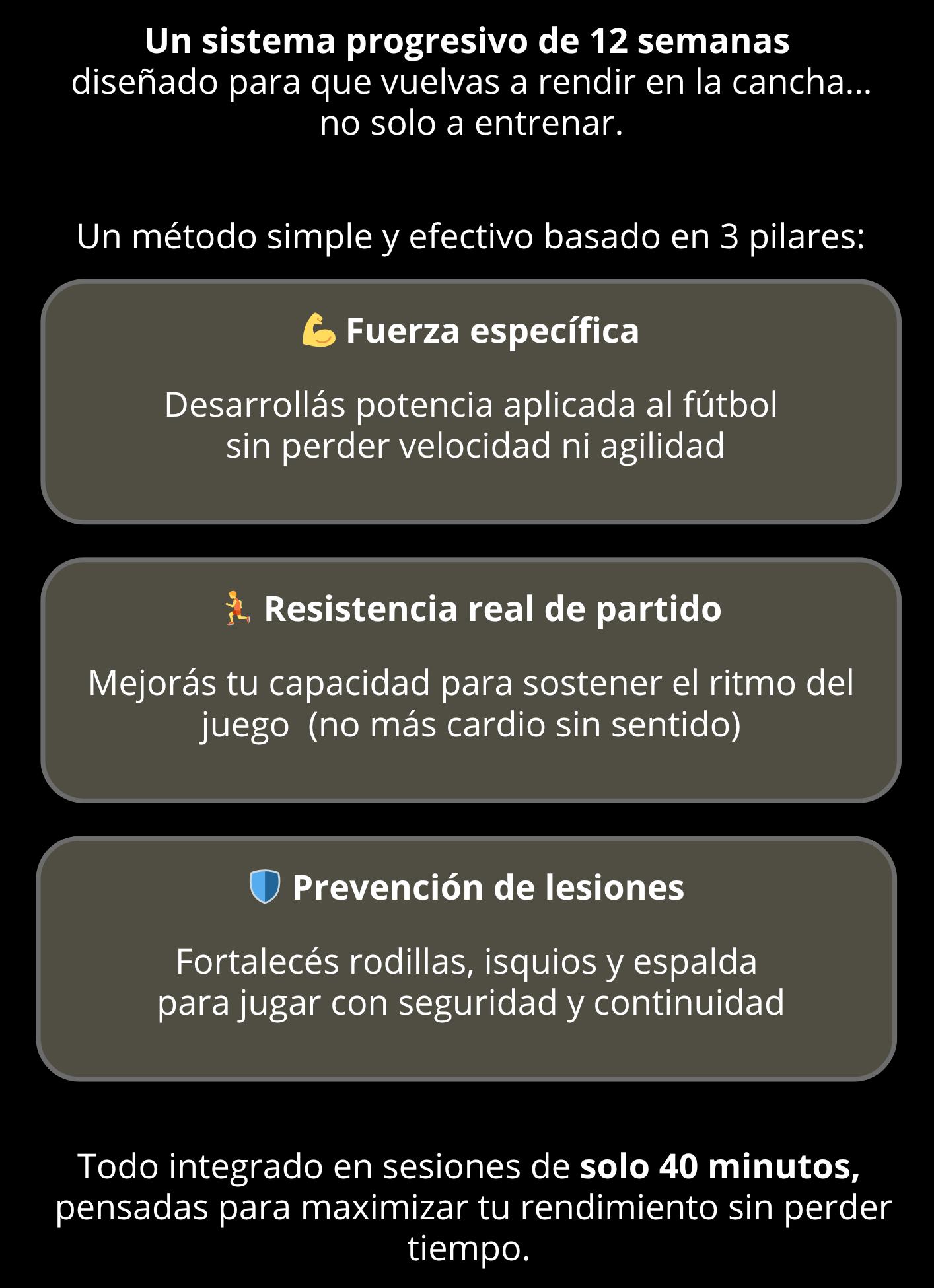 Los entrenamientos duran solo 40 minutos y están diseñados para darte resultados reales sin perder horas entrenando.
